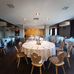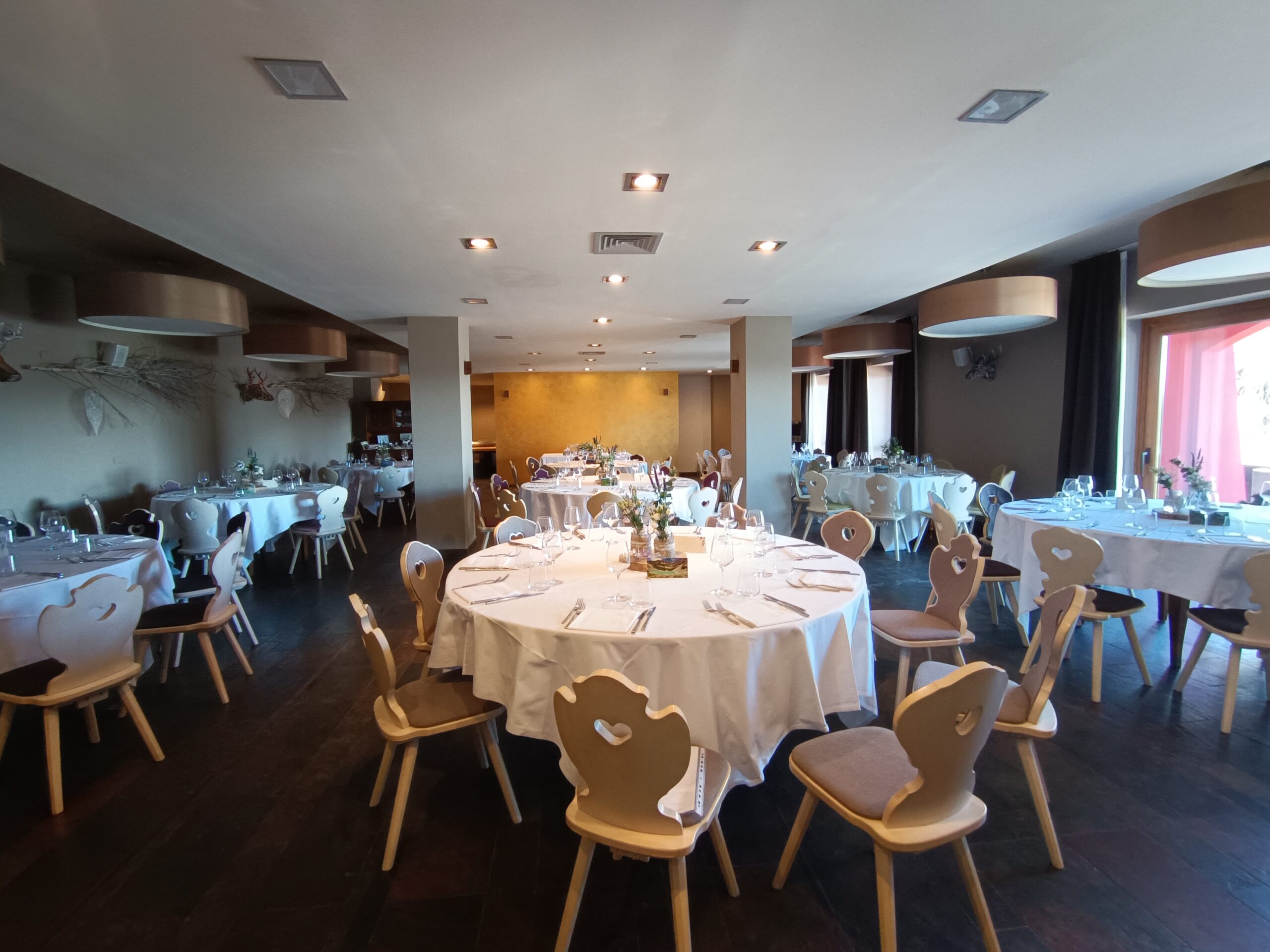 Il ristorante interno, dal design curato e moderno, accoglie il ricevimento con piatti gourmet ispirati alla tradizione valdostana, rivisitata in chiave contemporanea. Gli spazi, caldi e raffinati, permettono una perfetta gestione degli allestimenti e un servizio impeccabile.